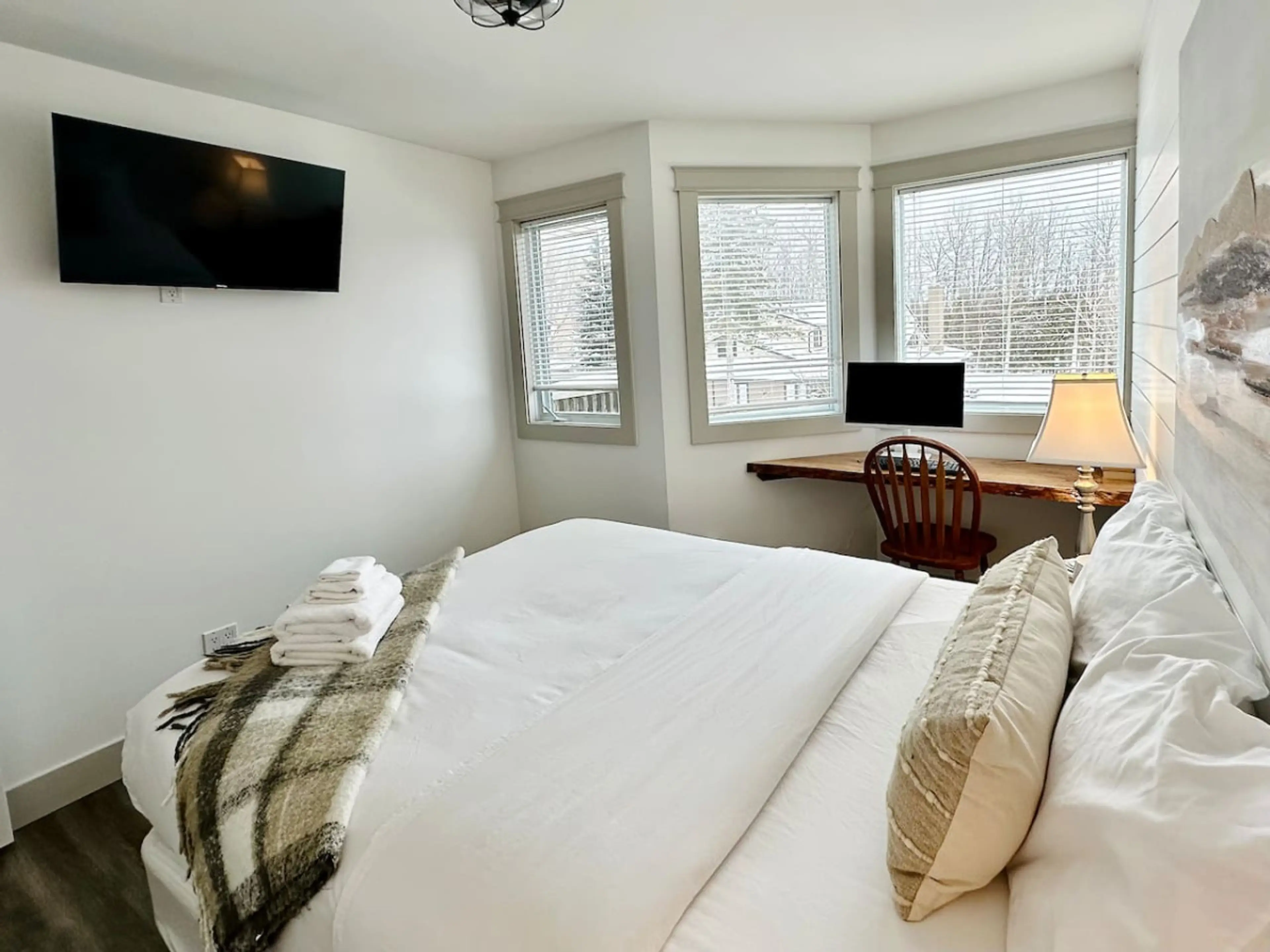 Escape to a festive winter retreat just minutes from Blue Mountain! This bright and modern unit "Pony Trail" has been transformed into a cheerful holiday hideaway—perfect for couples, families, and ski-season adventurers. Step inside to twinkling touches of Christmas décor, warm lighting, and a wel...